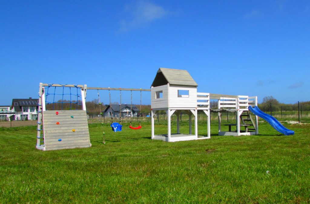 Dla najmłodszych gości przygotowaliśmy także coś specjalnego – plac zabaw, na którym mogą bawić się pod opieką swoich opiekunów. To miejsce dla dzieci, gdzie mogą spędzić czas na zabawie i integracji z rówieśnikami. Bezpieczeństwo i dobra zabawa naszych najmłodszych gości są dla nas bardzo ważne, dlatego dbamy o to, by plac zabaw był zawsze w doskonałym stanie i spełniał wszelkie standardy bezpieczeństwa. Do dyspozycji dzieci mamy huśtawki, zjeżdżalnie oraz mały tor przeszkód ze ścianką wspinaczkową. Całość usytuowana jest niedaleko apartamentów, co sprawia, że nie mamy konieczności spuszczać naszych pociech z oczu.