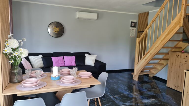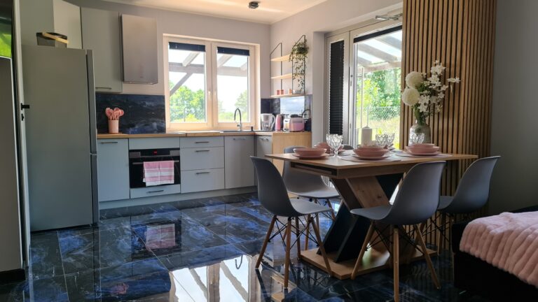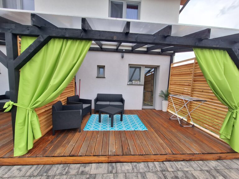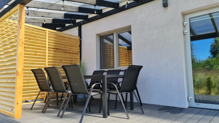 Każdy z naszych apartamentów posiada dostęp do w pełni umeblowanego tarasu, który stanowi integralną część naszej oferty. To idealne miejsce na spędzenie czasu z rodziną i przyjaciółmi, na przykład do konsumpcji posiłków, a także na nawiązanie nowych, ciekawych relacji z innymi gośćmi. Nasi klienci często korzystają z właśnie tego udogodnienia, na przykład po aktywnie spędzonym dniu na zwiedzaniu okolicy czy wędrówkach, jednocześnie dzieląc się swoimi wrażeniami. Dodatkowo, taras jest oświetlony wieczorami, co tworzy przyjemną atmosferę i umożliwia spędzenie czasu na zewnątrz także po zmroku.